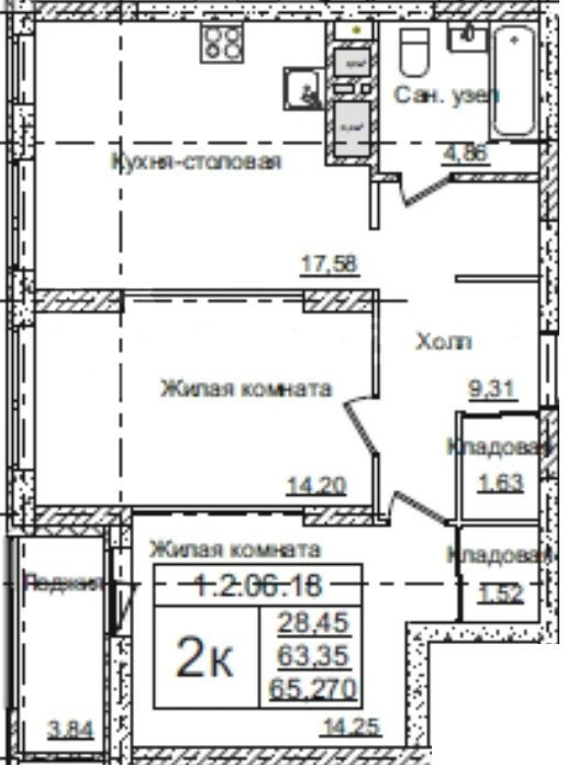 313-4027 63.3 кв.м. 2 комнатная 18 этаж 25 этажное